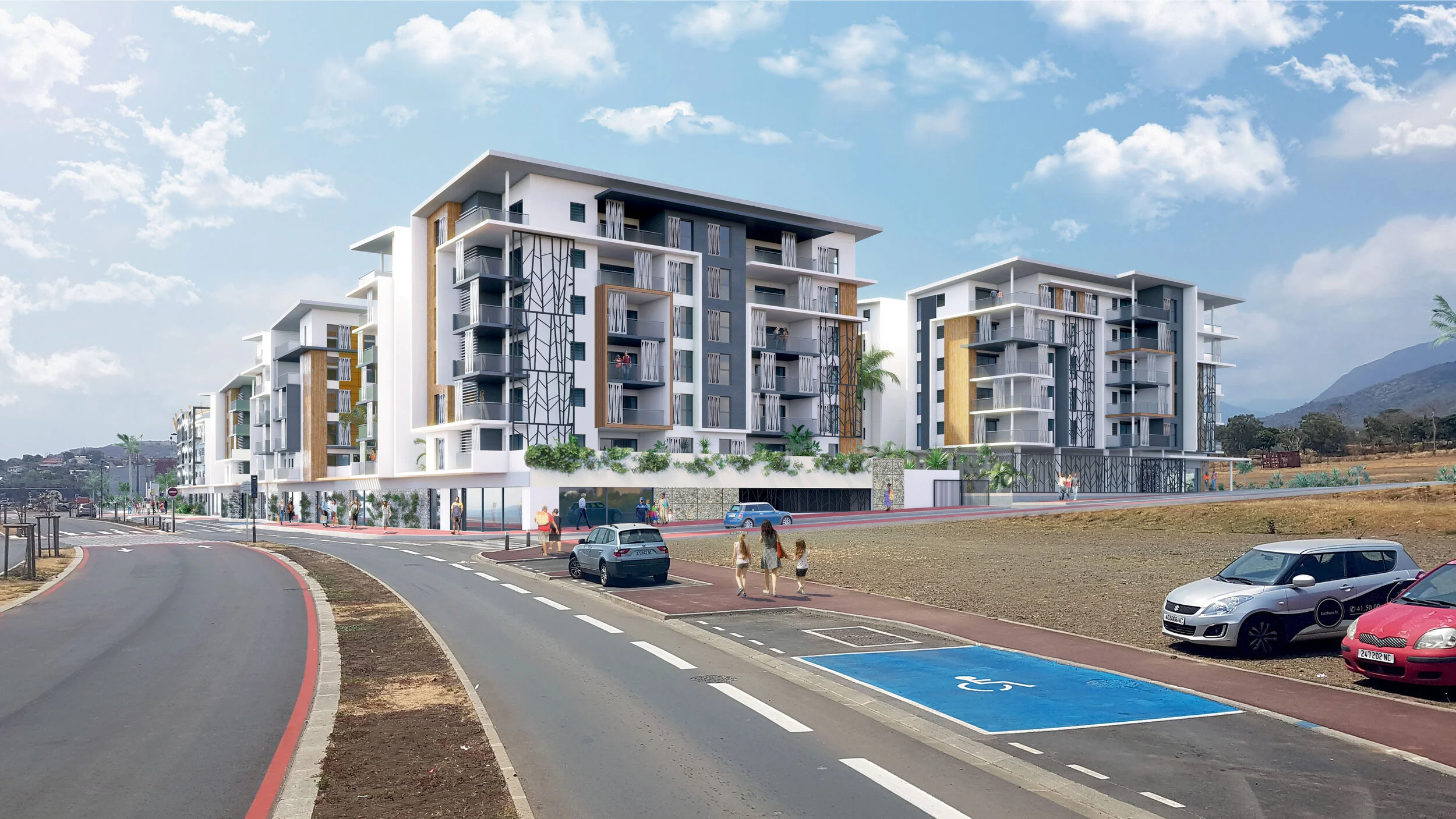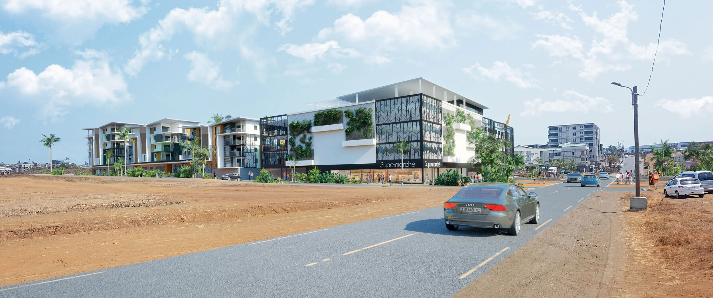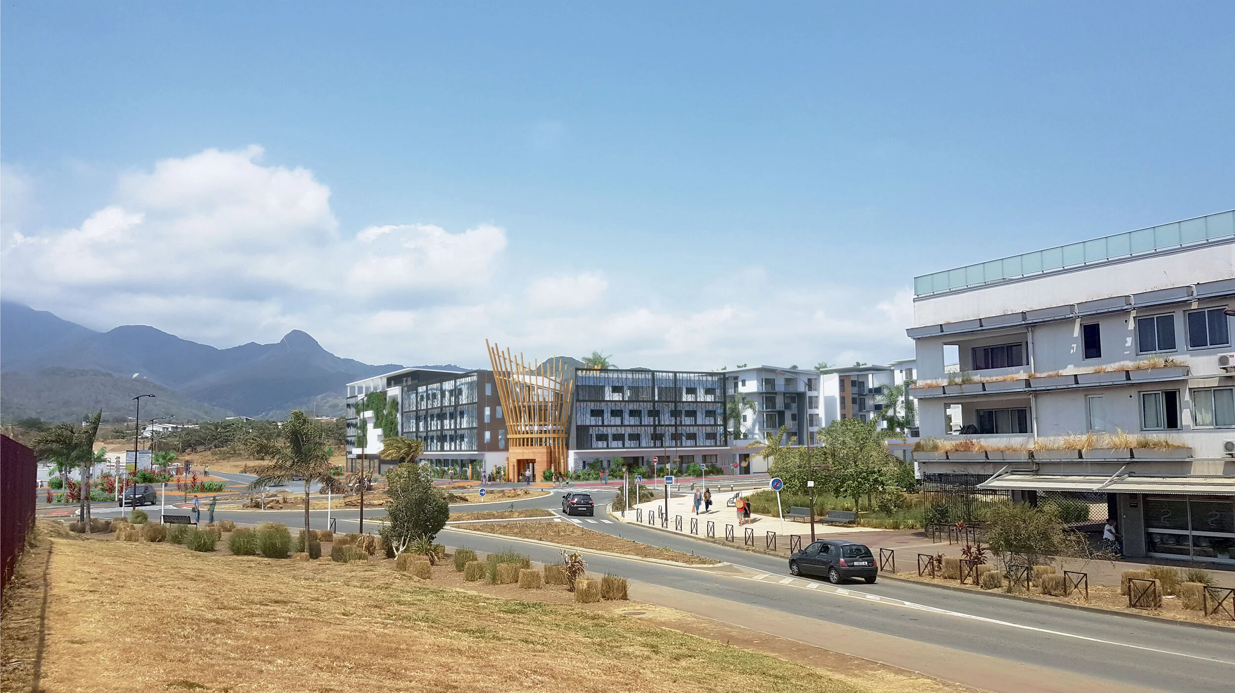 Le siège social est implanté à l’angle boulevard de Koutio et le long de l’avenue Paul Emile Victor. En R+3 il marque le caractère urbain de la parcelle et donne au parvis faisant face une vraie identité. Les logements implantés le long du boulevard de Koutio et de la rue Monod, sont eux traités comme des éléments plus verticaux permettant de laisser échapper des perspectives visuelles. Ces bâtiments vont du R+3 au R+6, garantissant une écriture urbaine sans nuire au cœur d’îlot. Nous créons ainsi un dégradé facilitant l’intégration du projet dans son contexte car chaque bâtiment est à l’échelle de son urbanisme proche.