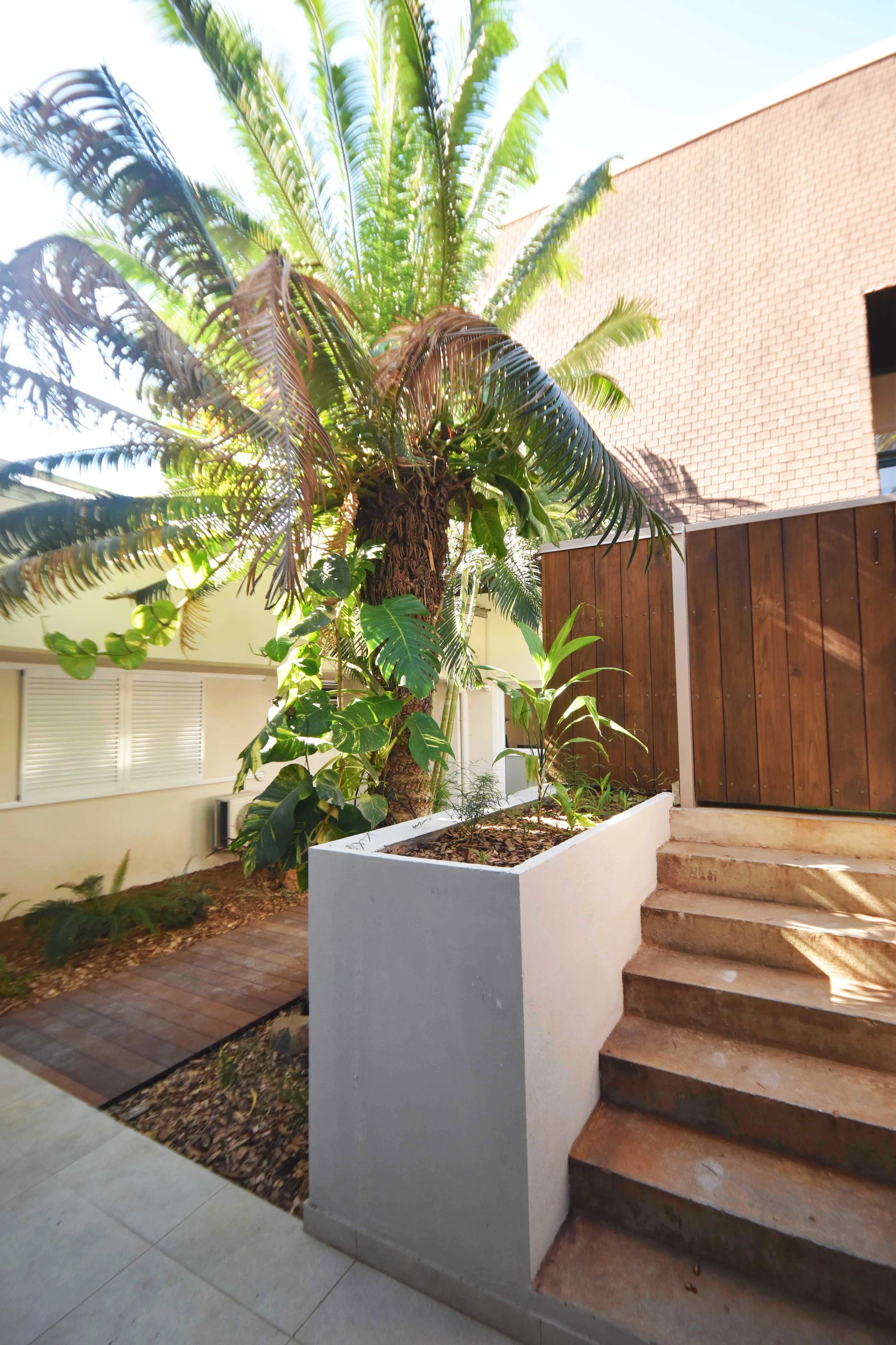 Le projet vise la transformation d’un foyer construit dans les années 70 en 6 logements (5 F3 et 1 F4) et une école Montessori. L’enjeu du projet a été de minimiser les transformations extérieures du bâtiment afin de ne pas impacter l’environnement ambiant et de conserver l’écriture architecturale du bâtiment. Un gros travail de réaménagement intérieur a été fait afin de répondre au programme du maître d’ouvrage. Le bâtiment existant étant constitué de deux parties, nous avons souhaité isoler l’école Montessori des logements afin d’optimiser les gestions de flux. La partie Est accueille l’école Montessori et les parties centrale et Ouest les 6 logements. D’un point de vue paysager, seules les séparations entre les logements au RDC et les ouvertures de l’école Montessori seront visibles de la route de l’Anse Vata. Cette parcelle n’ayant qu’un seul accès sur le domaine public, couplé à la difficulté de prendre un recul visuel sur le site, l’impact paysager induit par ce projet est extrêmement faible.