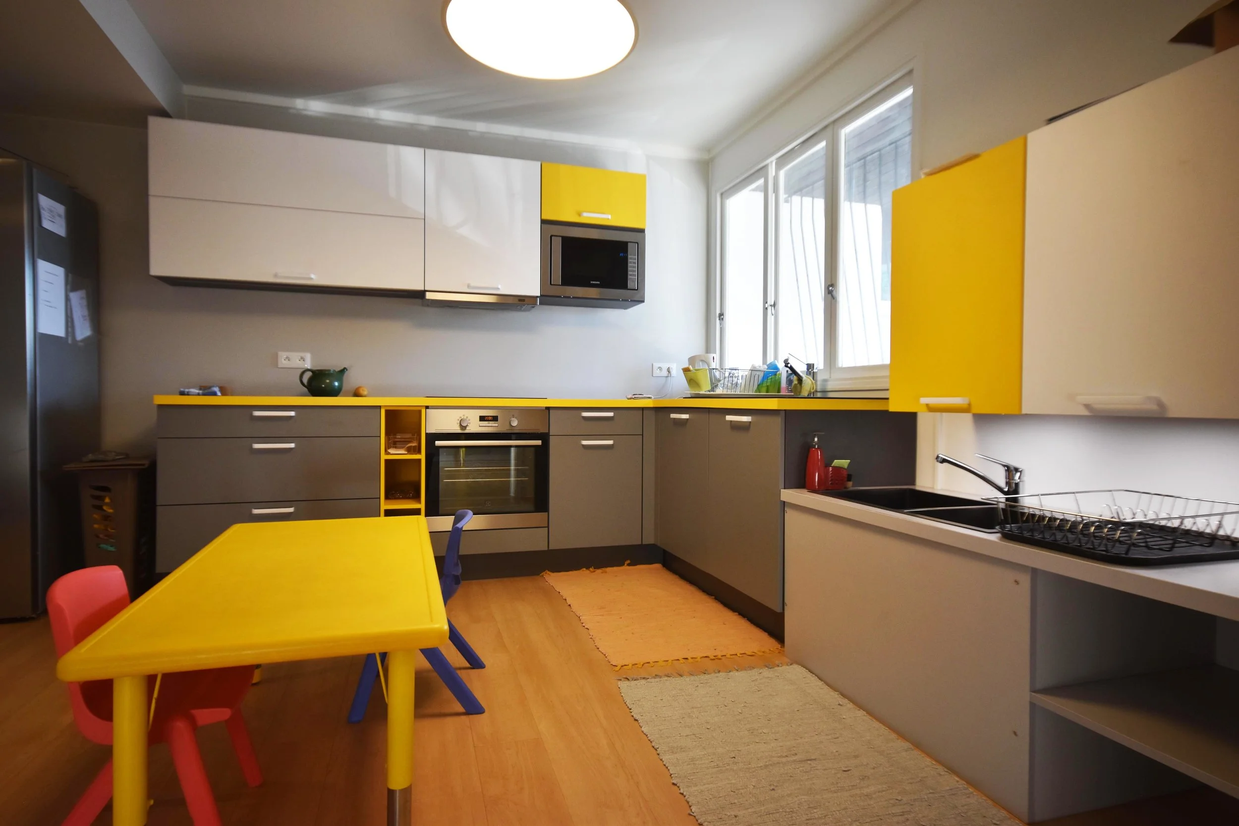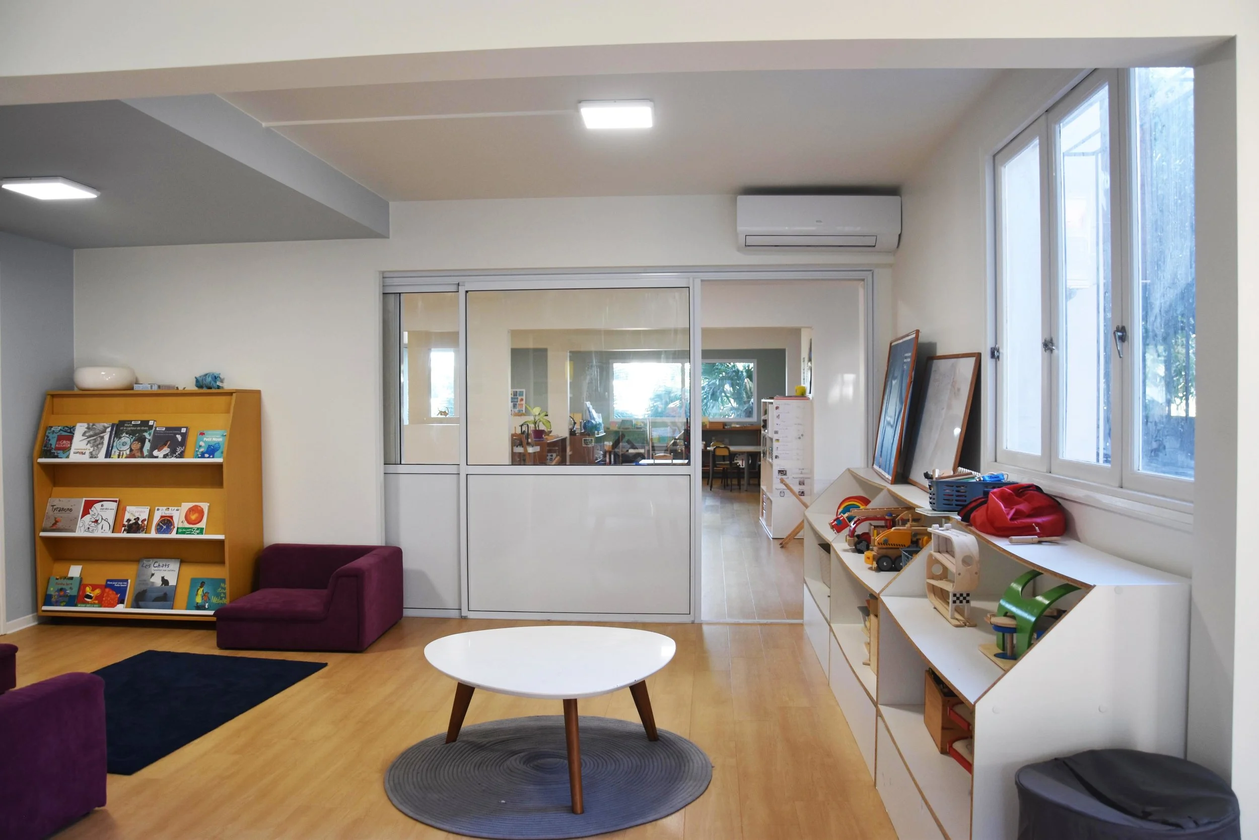 Cette école Montessori a été créée dans l’aile appartenant anciennement à la CAFAT du foyer Massabielle. Un gros travail d’aménagement intérieur a été réalisé afin de répondre aux besoins spécifiques d’une école Montessori. Les espaces doivent permettre aux enfants de développer leur autonomie tout en garantissant un contact visuel avec les professionnels. Cette transformation a aussi fait l’objet d’une mise aux normes incendie et dans le cadre d’un établissement recevant du public.